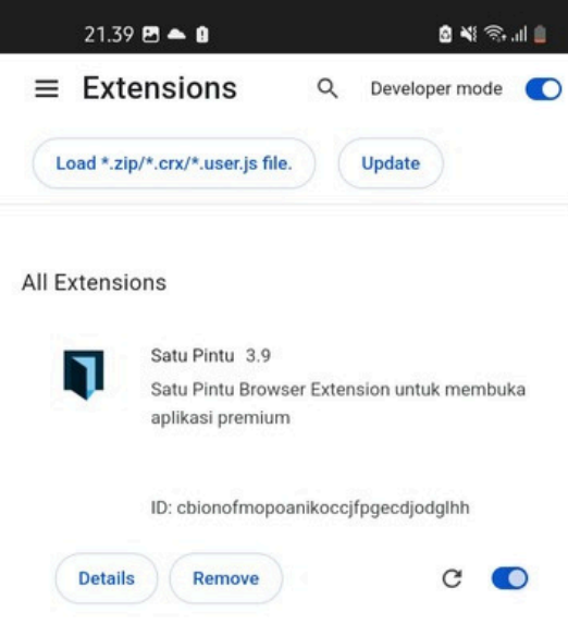 8. Maka akan tampil ekstensi Satu Pintu yang udah kalian pasang