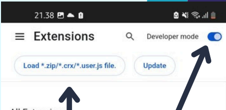 6. Aktifkan "Developer Mode" dan Klik tombol "Load *.zip/*.crx/*.user.js file." agar bisa import ekstensi Satu Pintunya